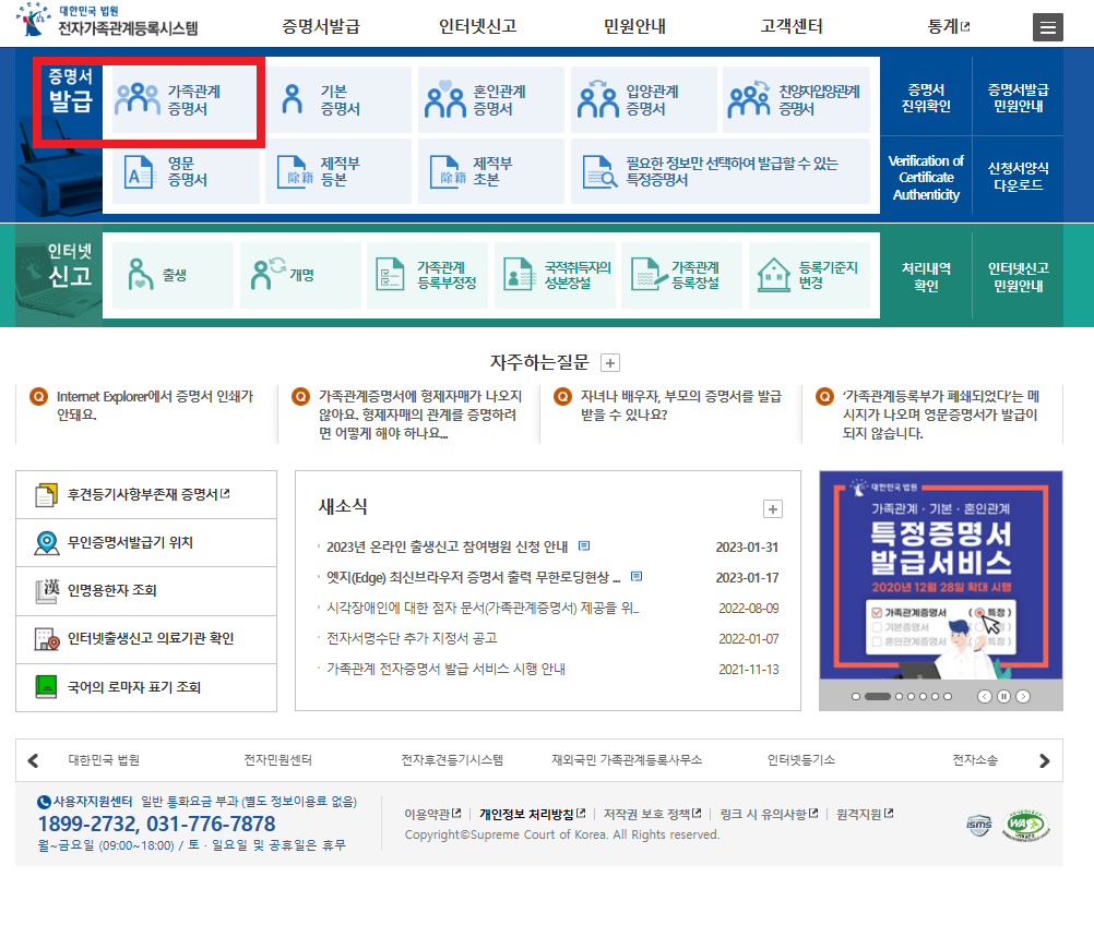 1. 대법원 전자가족관계등록시스템 홈페이지에 방문합니다.