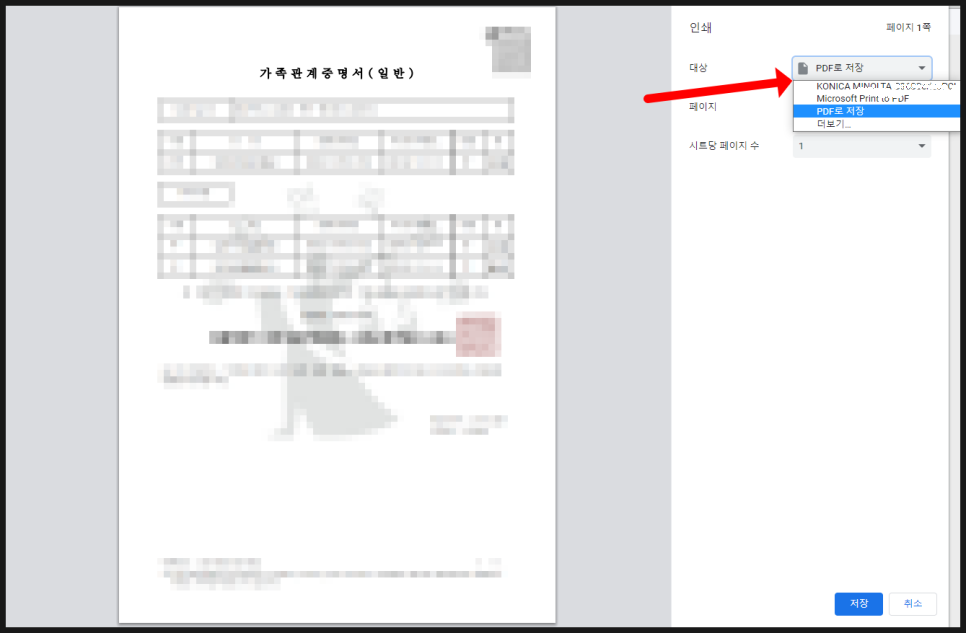 아래 화면 처럼 PDF로 저장할수도 있습니다.