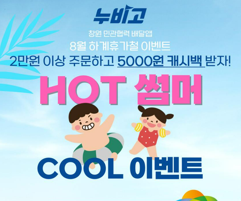 창원시 민관협력 배달어플 누비고에서 8월 한달 동안 누비고 어플을 통해서 주문하시면 캐시백을 지급받는 하계휴가철 이벤트를 진행하고 있습니다.